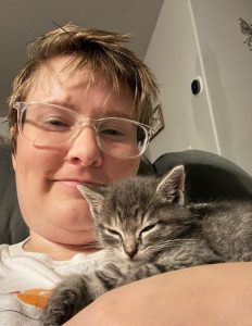 Now based in Lincoln City, Paige serves as the Foster Coordinator for Central Coast Humane Society, overseeing intake and placing rescues into care. Combining her professional experience with personal passion, she shares her home with three adopted cats (two foster fails). Her philosophy focuses on balancing deep affection for foster animals with maintaining capacity for new, urgent rescues.